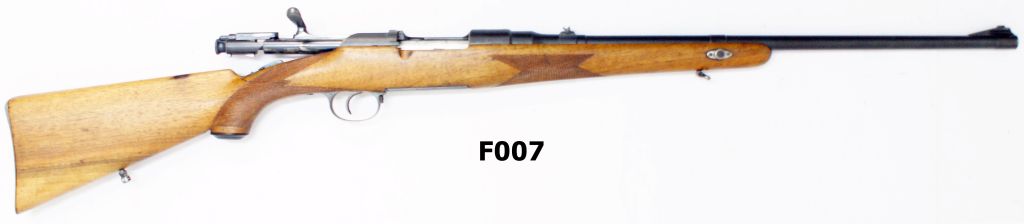 Takedown rifle with tang peep sight and half-stock fore-end. Open sights to 22 barrel, receiver has been drilled & tapped for Lynx type scope base. Chequering has been refreshed and stock refinished. Wrap-around chequering to fore-end and two panel chequering to wrist. Wrist has a crack to it which appears to have been professionally repaired. Ribbed butt plate with hinged trap to it. Fair bore.