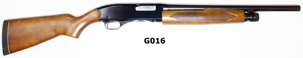 Pump action with barrel length of 18,5 and wooden stock. Very good plus condition.