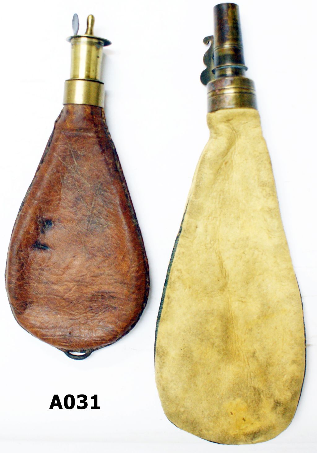 076Unsold-A031-Two Leather Vintage Shot Flasks