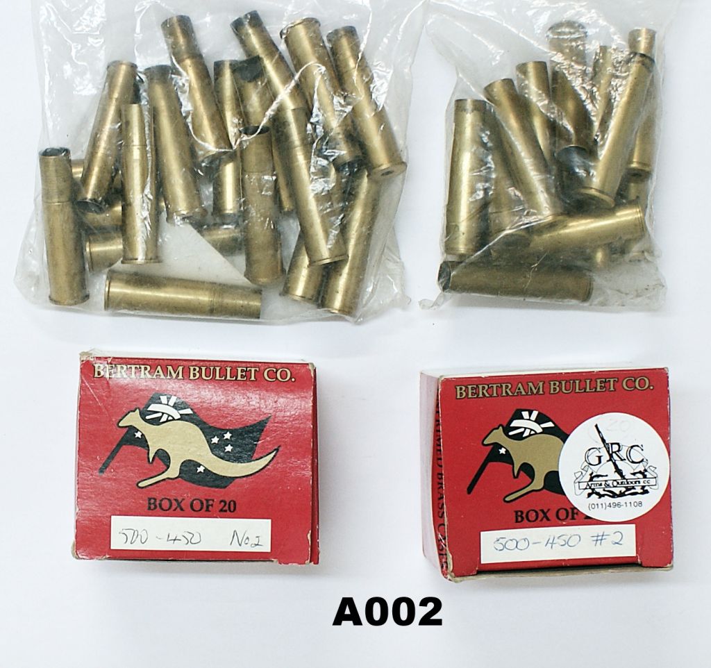 077A-A002-.500/.450 No. 2 Bertram Cases x 73, 40 x new, 33 x fired
