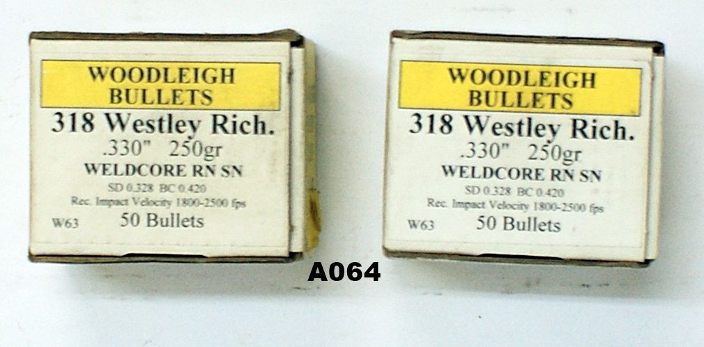 / 077A-A064-.318 West Rich Woodleigh 250gr RN.SN Bullets x 75