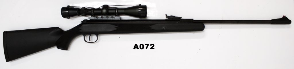 Fitted with 3-9×40 FX scope. Breakneck action with open sights to 19,75 barrel. Black synthetic stock. Excellent condition.
