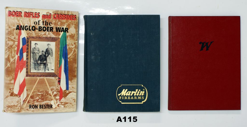 1) Boer Rifles and Carbines of the Anglo Boer War by Ron Bester. Hard cover, illustrated, 215 pages. 2) Winchester Shotguns & Shotshells by Stadt. Hard cover, illustrated, 184 pages. 3) Marlin Firearms by Brophy. Hard cover, illustrated, 696 pages.
