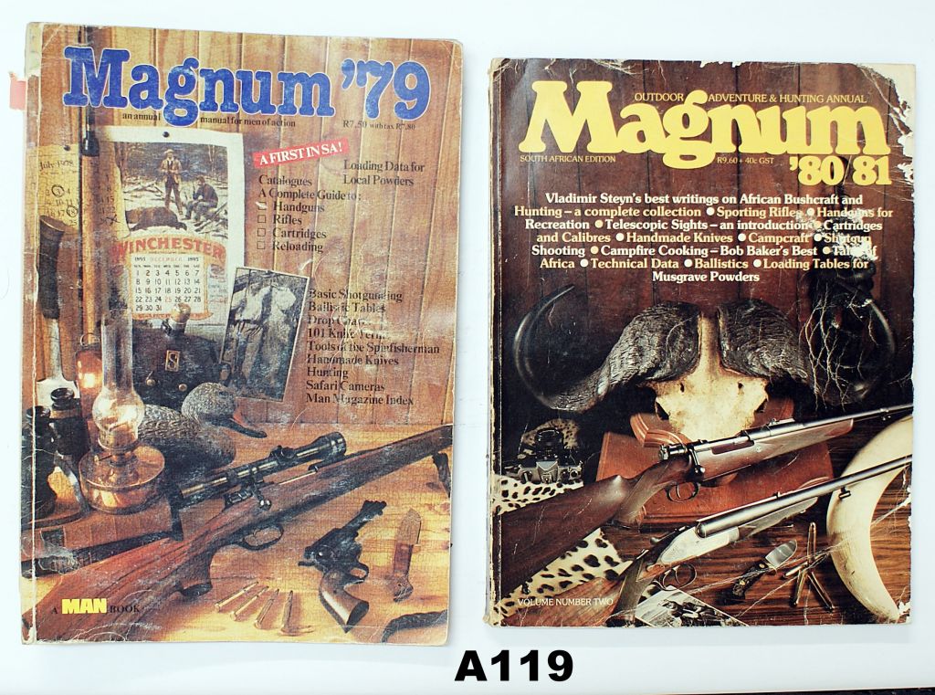 1)Magnum ’79, soft cover, illustrated, 271 pages. 2) Magnum ’80/81, volume number two, soft cover, illustrated, 269 pages. Cover damaged.