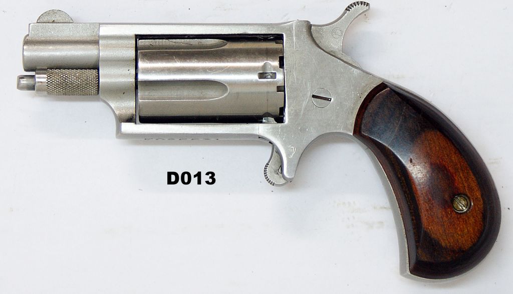 Stainless steel five shot with 1 1/8 barrel and spur trigger. Excellent condition.