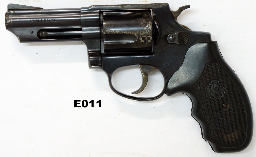 Small frame revolver with 5-shot cylinder, 3 barrel and rubber grips. Some light pitting to section of top strap and one section of cylinder. Rest, good condition.