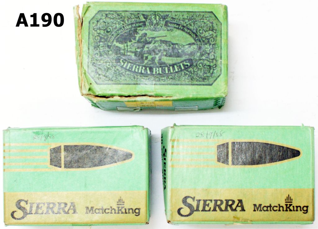 1) .30cal (.308) Sierra (2200) HPBT Match 168gr x 200. 2) .30cal (.308) (2160) Boat Tail Spitzer 180gr x 100.