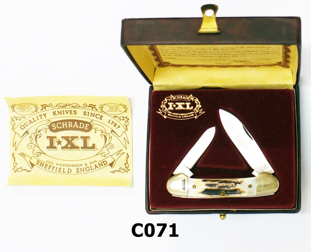 078A-C071 – Schrade I-XL By Sheffield England Knife – Cased