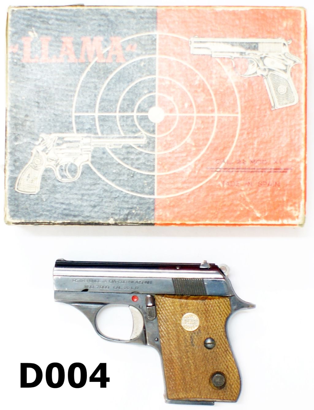 In Llama box with instruction manual, spare magazine and cleaning rod. Barrel length of 59,4mm/ 2 3/8″ and magazine capacity of 8 rounds. Mint condition.