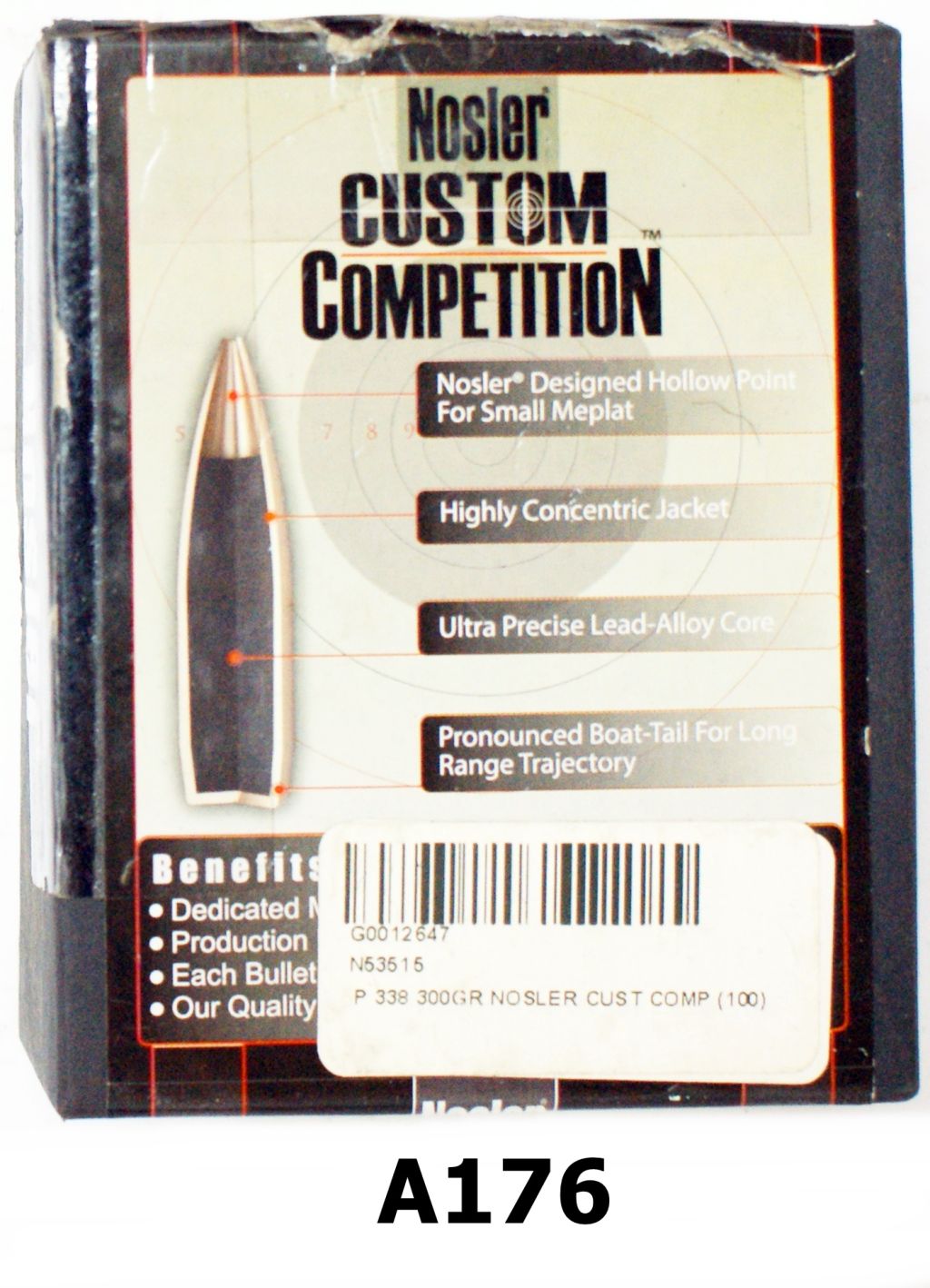 079A – A176 – .338win Nosler Custom Competition Hollow Point Boat Tail 300gr x 50
