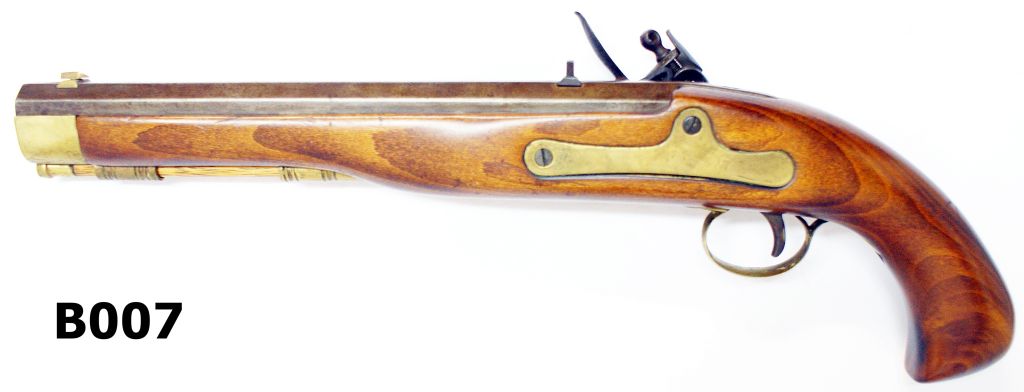 Fullstock, octagonal barrel of 10″ (225mm), no makers name, brass fittings. Good condition.