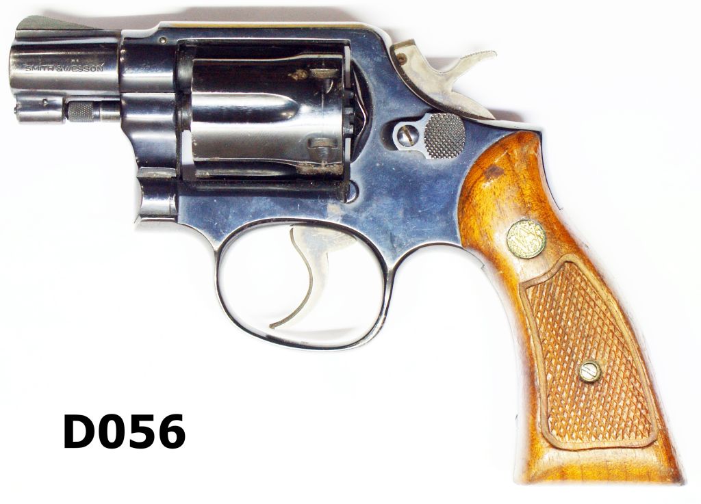 K frame revolver with six shot cylinder, 2″ barrel, chequered walnut factory grips with S&W logo to them. Excellent overall condition.