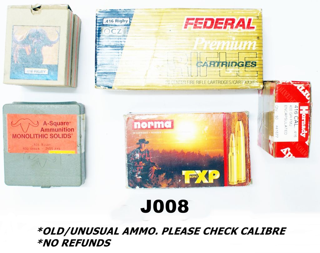 079A – J008 – .416rigby Mixed Ammunition – 42rnds + Brass And Bullet Heads