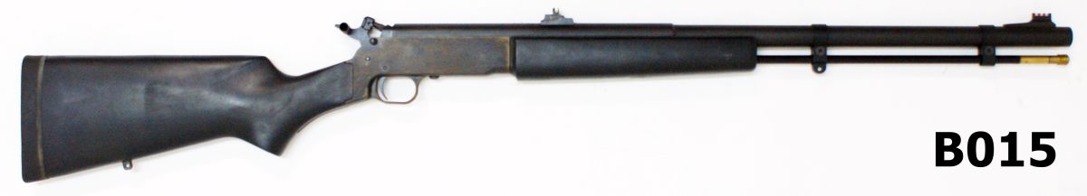 Inline percussion rifle hi-viz front and rear sights, 26″ barrel with hi-viz front and rear sights. Drilled & tapped for scope mounting. Black finished stock with recoil pad. New.