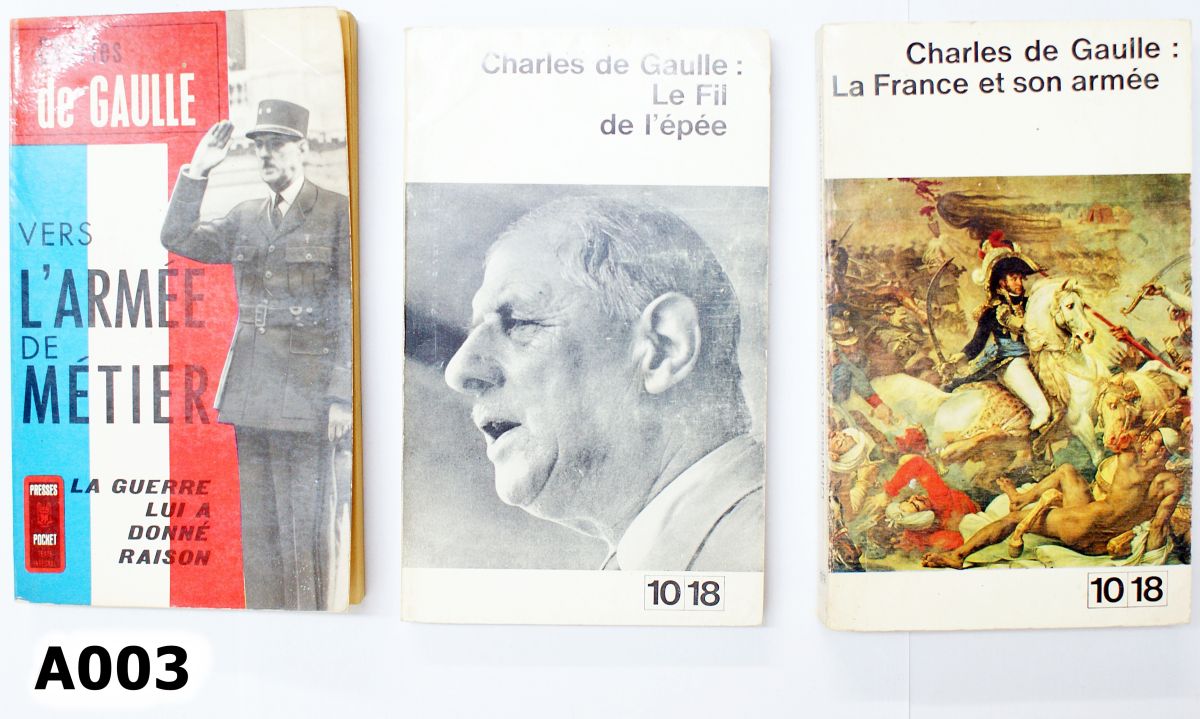 1) Charles De Gaulle: Vers L’Armee De Metier. Soft cover, 184 pages. 2) Charles De Gaulle: Le Fil de l’epee. Soft cover, 185 pages. 3) Charles De Gaulle: La France et Son Armee. Soft cover, 312 pages.