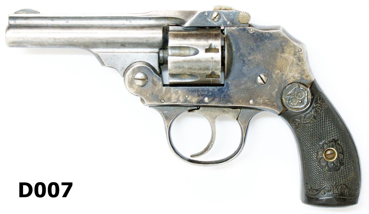 Top break action with ribbed 3″ barrel. Hammerless with chequered hard rubber grips. Some holster wear to muzzle. Overall good original condition.
