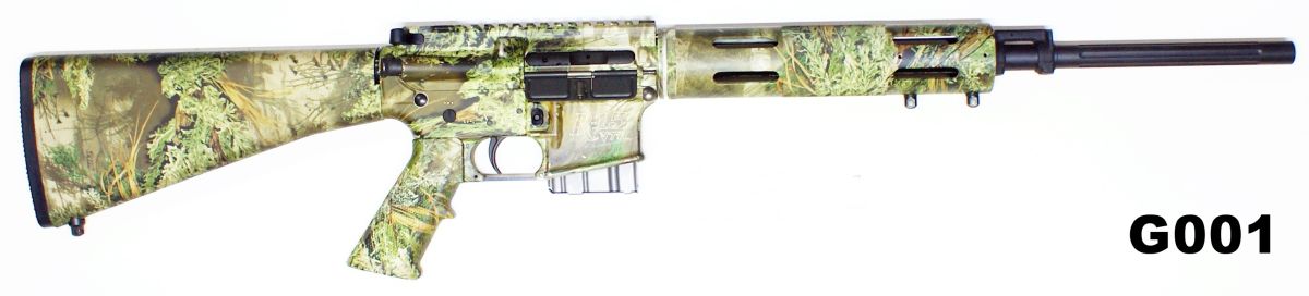 Semi-auto “Varminter” AR15 based rifle with heavy fluted barrel of 18,5″ and integral scope base to receiver. Round ventilated metal fore-end. Realtree Max-1 camo finish to rifle. 10rd magazine. Brand new.