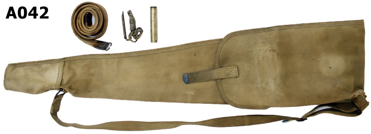 Includes brass oil bottle. cleaning cord. webbing sling and canvas rifle bag.