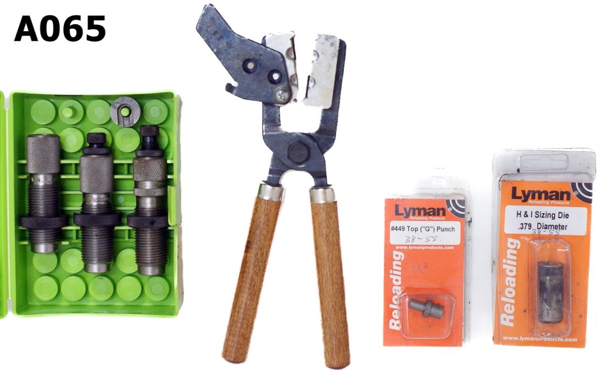 1) Redding .38/55 reloading dies. 2) Lee Mould with handles. 3) Lyman Top (“G”) punch. 4) Lyman H&I sizing die.