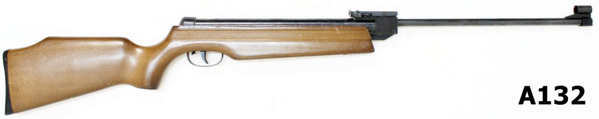 Break-neck air rifle with iron sights. 462mm barrel & wooden stock. Scope mounting grooves to receiver housing. Good condition.