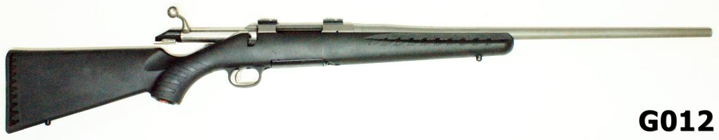 Stainless steel matt finish with 22″ barrel. Detachable box magazine. Scope mount bases to receiver. Black synthetic stock with sliding safety to tang. Good overall condition including bore.