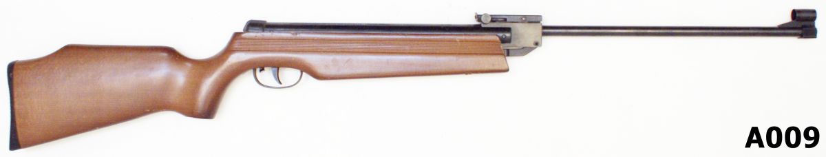 Break-neck air rifle with iron sights. 462mm barrel & wooden stock. Scope mounting grooves to receiver housing. Good condition.