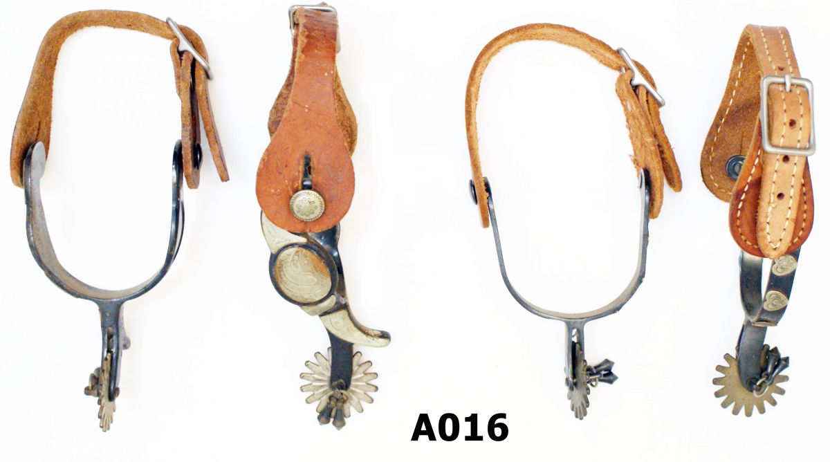 Two sets of spurs in very good condition with rowels and decorative bells attached.