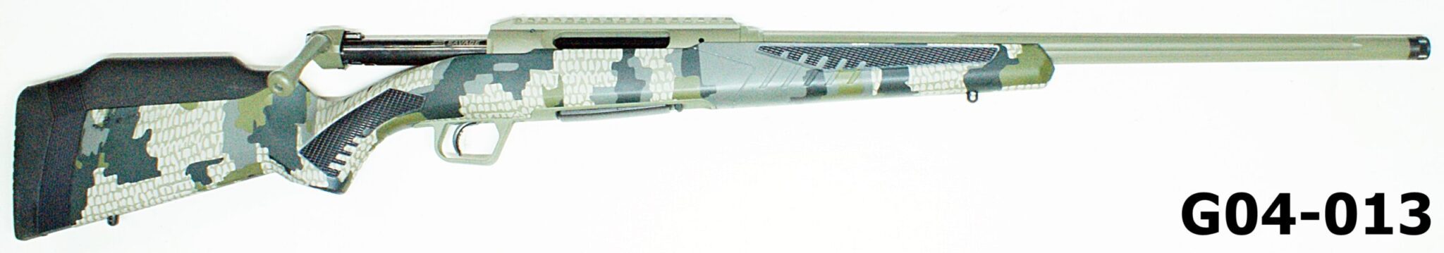 Synthetic camo stock, muzzle of 22″ (558mm) fluted barrel is threaded for surppressor and has a thread cap fitted. Detachable box magazine. Integral tactical mounting rail to receiver, trigger safety. “As new” condition.