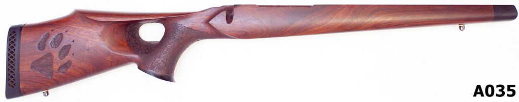 For the Brno magnum range, including .300 mag, .375 H&H mag & .458 series of rifles. A custom made thumbhole stock of fairly well-figured wood with ebony grip & tip caps, ventilated recoil pad, stippling to grip and side of stock. Very good condition