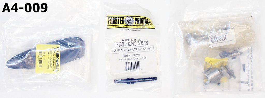 Classic bolt handle. in the white; Trigger guard screws; Safety kit; Barrel band and swivel kit; Brownells checkered steel butt plate; Brownells checkered steel grip cap.