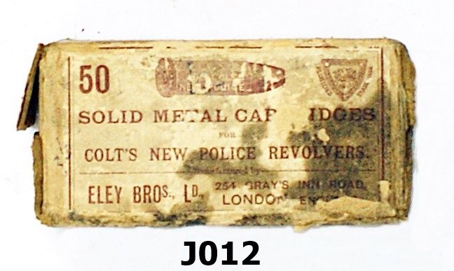 Box marked 50 Solid Metal Cartridges for Colt’s New Police Revolvers.