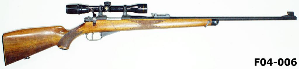 Equipped with Nikko-Stirling 4×32 WA scope. Open sights to 26″ barrel. Detachable box magazine which is missing. Schnabel tip to fore-end, chequered wrist and pistol-grip with a cheekpiece to Bavarian styled stock. Rifle is built on the Brno Fox/ZKW action. Good bore, good overall condition.