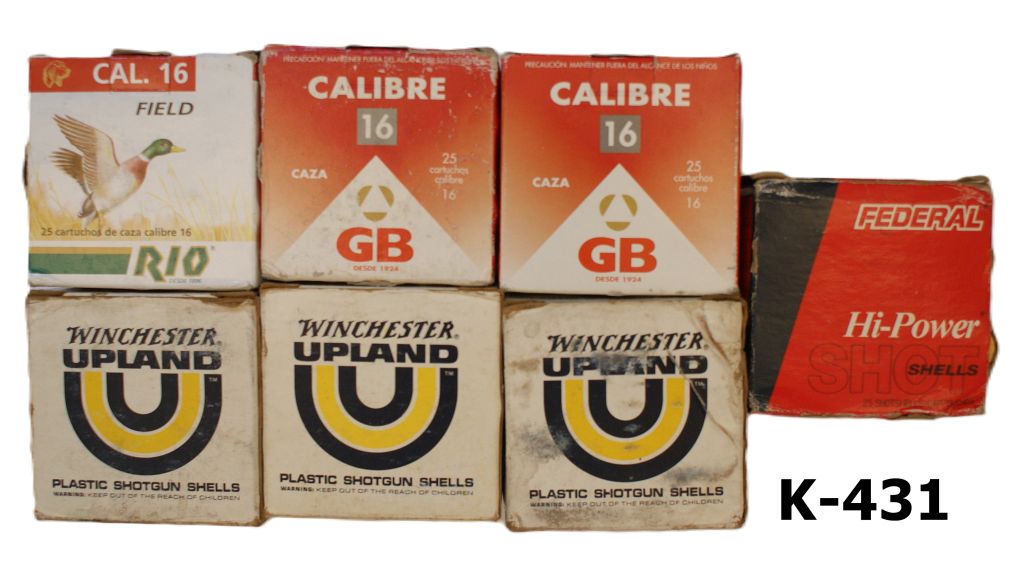 16ga R10, 1oz, 2 3/4″ x 25 Rounds. 16ga GB,1oz, 2/34″ no 7 x 25 Rounds. 16ga GB,1oz, 2/34″ no 6 x 25 Rounds. 16ga Federal Hi-Power 1 1/8oz, 3 1/4″ x 24 Rounds. 16ga Winchester Upland 1 1/8oz, 2 3/4″ x 75 Rounds.