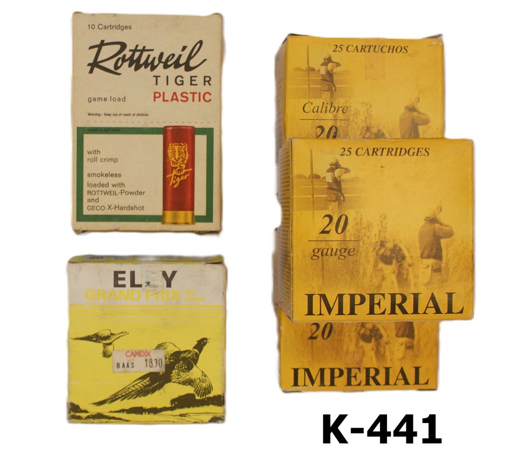 Imperial #7 26g 70mm x 3(25); Eley #6 23g 65mm x 1(25); Rottweil #4 x 2(10).
