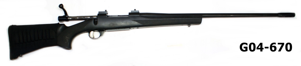 Muzzle brake fitted to 24″(609.6mm) barrel, action has Lynx scope mount bases fitted, black synthetic stock. Rifle and bore are both in very good condition.