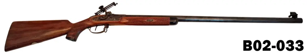 Long range target rifle inspired by the 1865 Gibbs rifle. Barrel length of 32″ (812,8mm). Mint Condition.