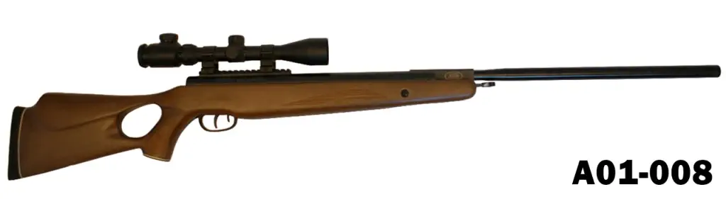 A break-neck, Nitro Piston with thumbhole wooden stock. Bushnell 3-9×40 telescope fitted. Good condition.