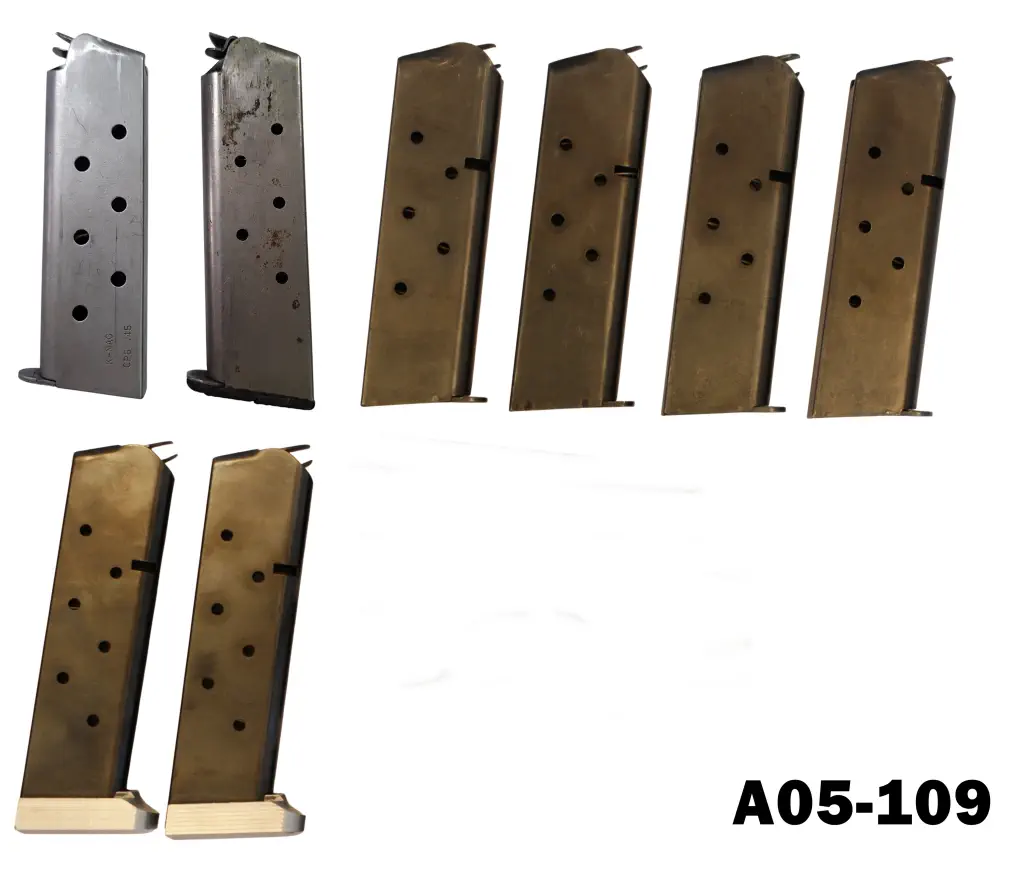 2.) Eight round magazines with aluminium shoe x 2, good condition.