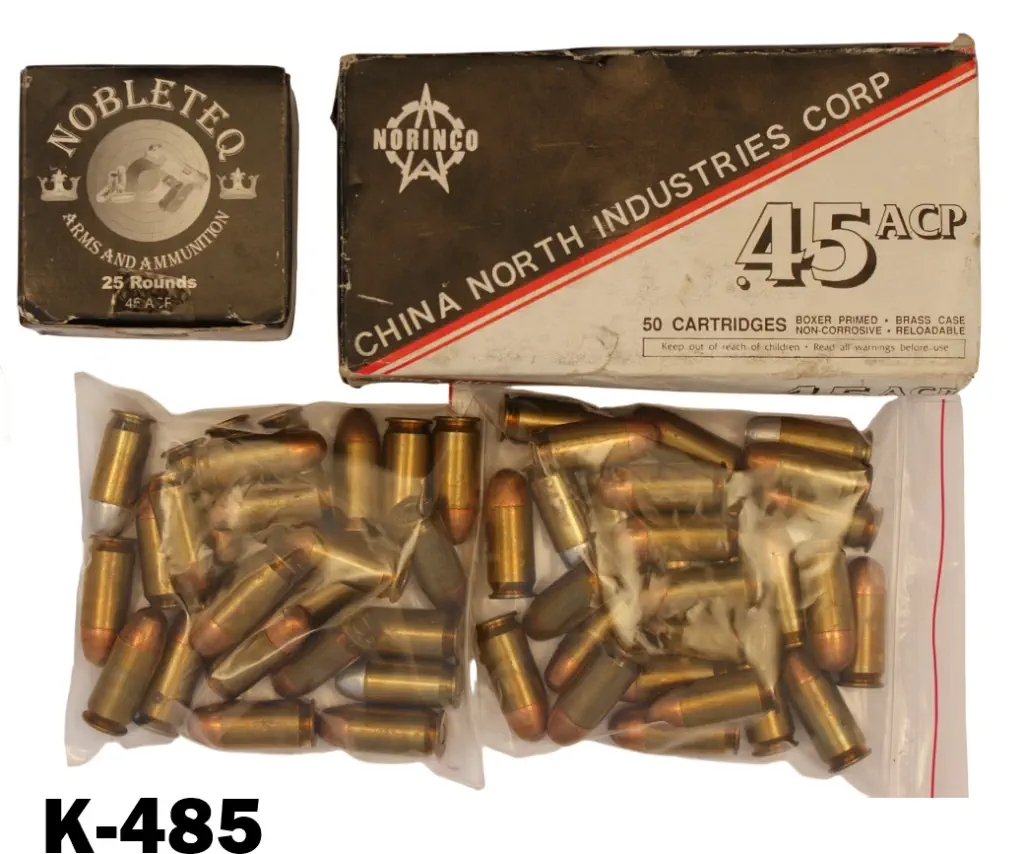 2) .45acp Norinco 230gr FMJ x 20 ammunition & 22 cases.
