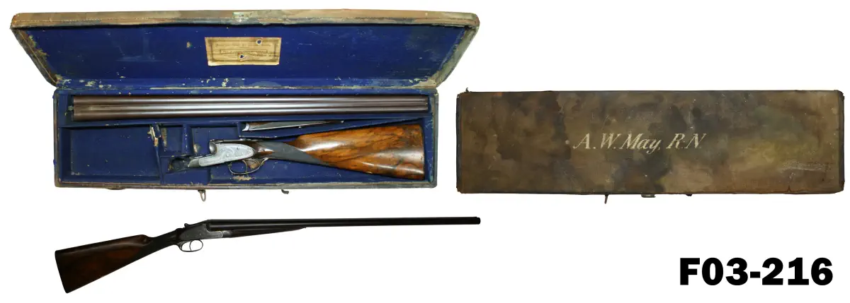 100-F03-216 12ga Army & Navy Sidelock Ejector S/S Shotgun – Cased
