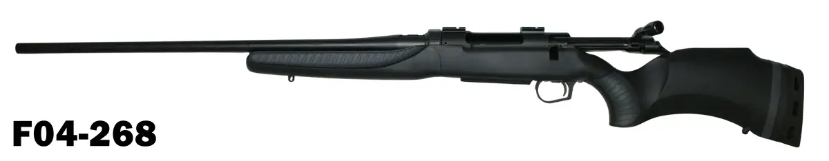 Left hand actioned rifle. Barrel of 24″ (609,60mm) with 1;10″ twist. Hogue overmoulded stocks have the entire barrel exposed and are designed for optimal cooling of barrels. Adjustable triggers. Rifles have a weight of 7lbs (3,17kg). Very good plus condition including bore. (Start Bid : R6500 Hi Estimate: R8500)