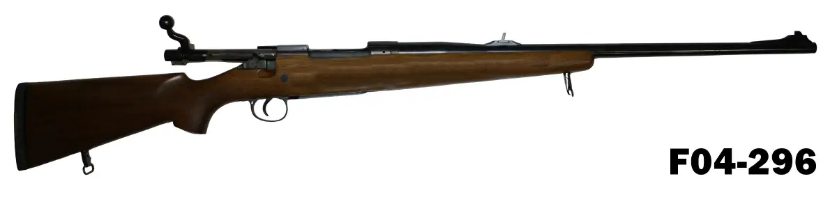 Built on the P14 action which provides a greater action length and larger magazine capacity than the standard M98 Mauser action whilst still providing a controlled feed and claw extractor which is essential on a big bore rifle. Open sights to 24″ (609,60mm) McGowen barrel. Five round magazine capacity, straight line walnut stock with shadow line cheek piece. Double recoil lugs to stock. A rugged hard working utility rifle ideal for PH or Game Scout work. Excellent condition including bore. (Start Bid : R17500 Hi Estimate: R27500)