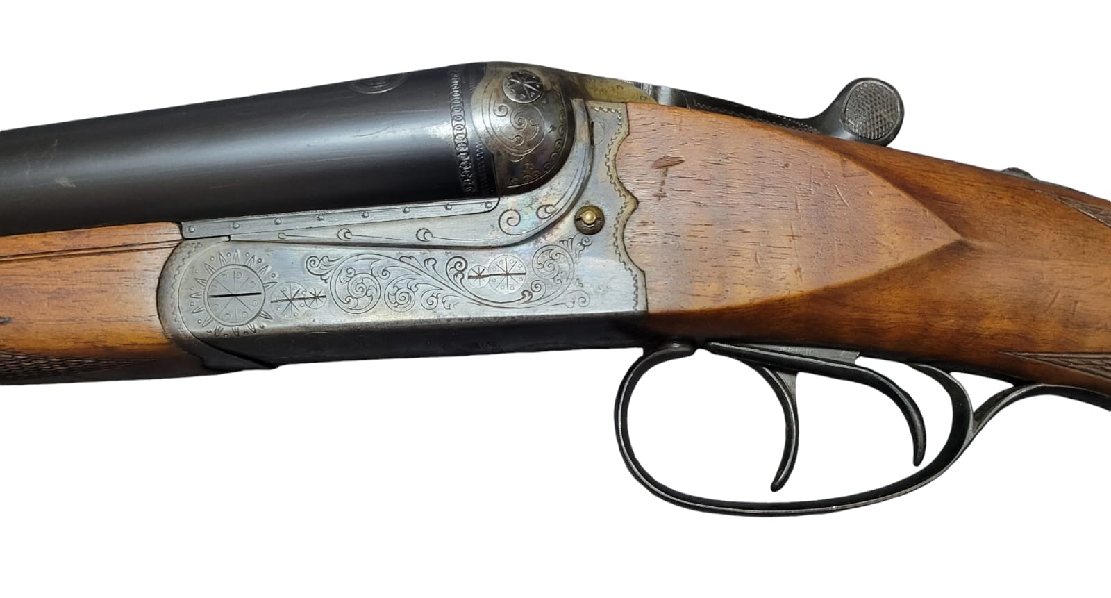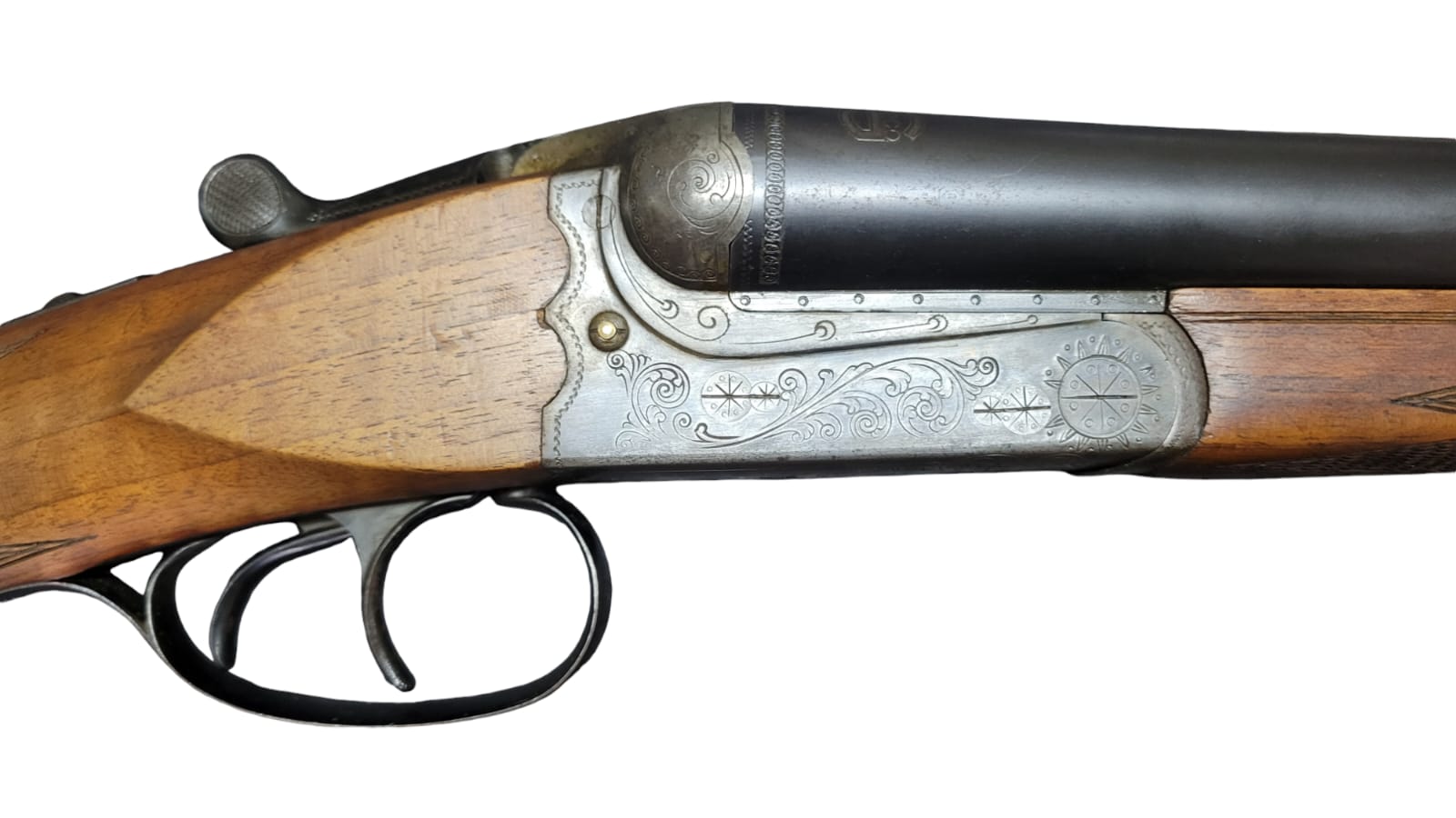 12GA Gecado S/S Shotgun. Box Lock, E., D.T. 28″ Barrel with Full Choke on both barrels. Good bore with very light pitting. Overall fairly good condition.