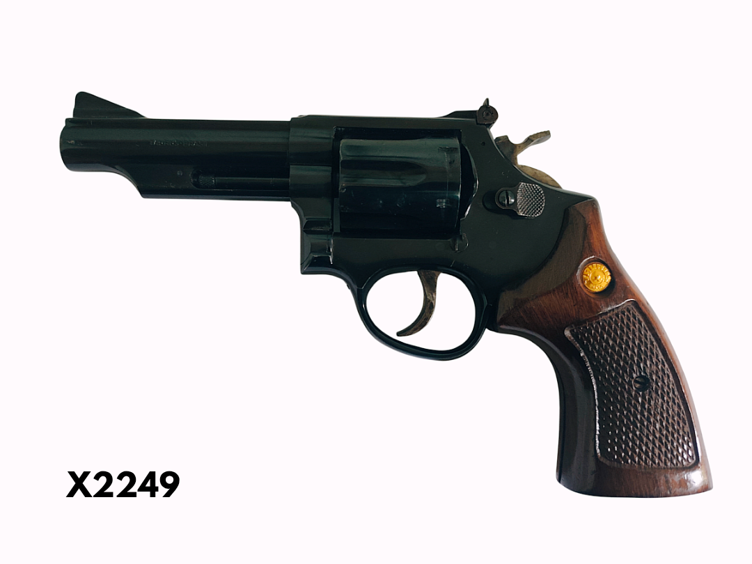 Finish: The revolver has a blued finish and features wooden grips.