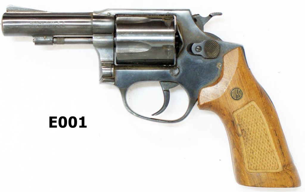A well made 8,5″ revolver with adjustable sights, chequered wooden grips with factory logo to them. Six shot cylinder. Includes lined leather holster. Good plus condition.