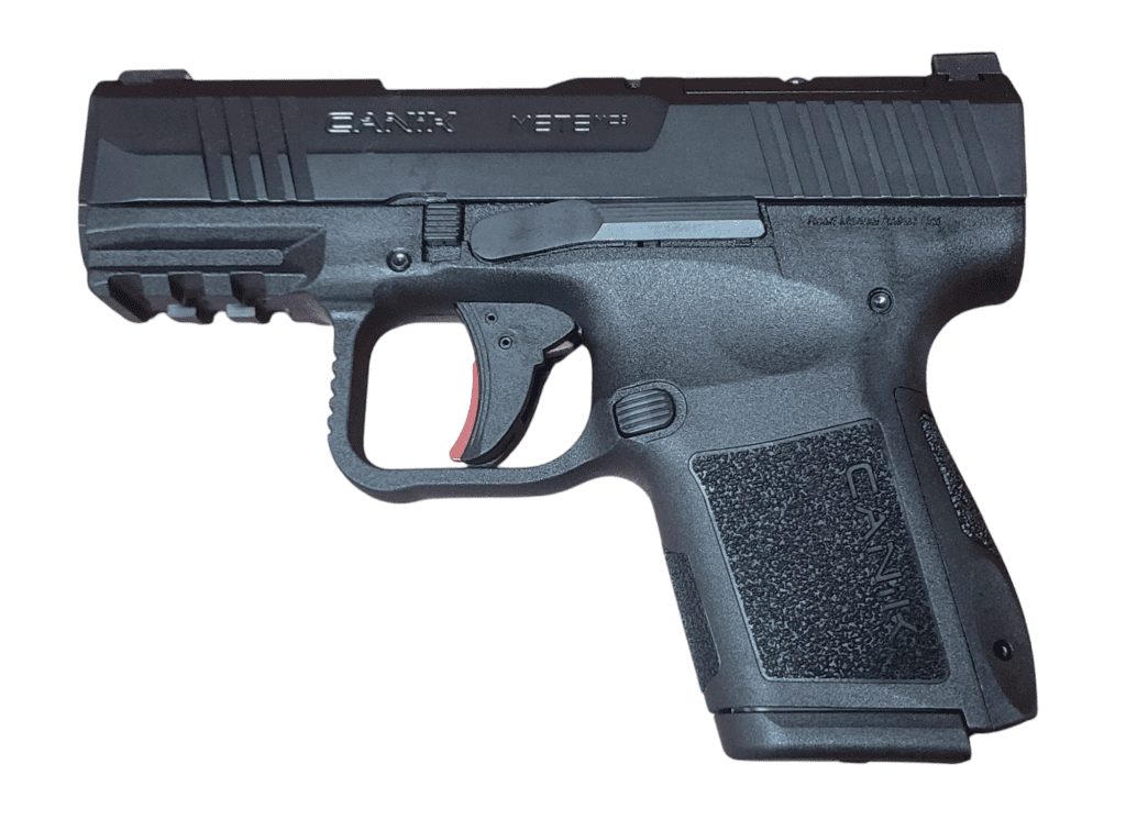 The METE MC9 is the highest capacity pistol in its segment, as well as the gun with the lowest barrel distribution. Equipped with a single point white front sight and a plain black sight set as standard, the METE MC9 has an 81 mm / 3.18” barrel.
