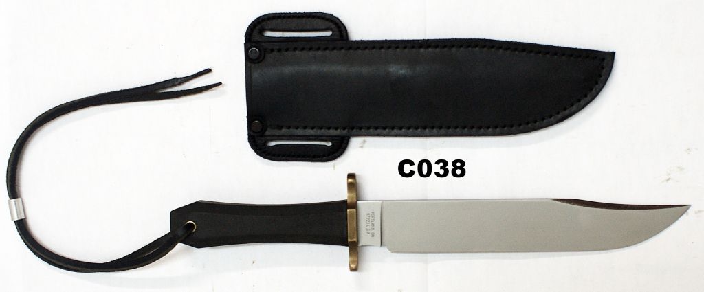 A “Gerber USA. Portland Or. 97223 USA” 24″ Bowie blade knife with a black leather sheath. 39cm overall length. Mint condition.